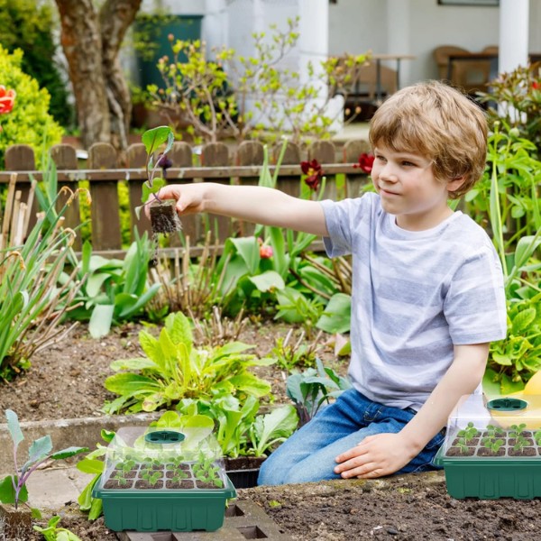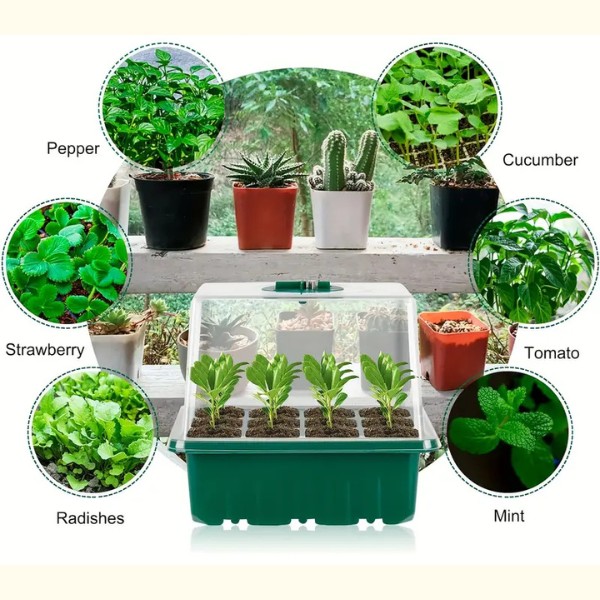 Minden tálcának 12 lyuka van, és egy fedéllel rendelkezik, amely szellőzőkapcsolóval van ellátva. Most szabályozhatja a páratartalom szintjét, és biztosíthatja a legjobb környezetet a palántáinak. Egészséges, jól szellőző gyökereket nevelhet az erősebb növények érdekében.