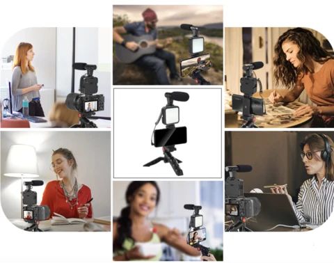 Légy az a tartalomkészítő, aki mindig is lenni szerettél volna. 🌟 Asztali állvány | LED lámpatest és mikrofon (AA elem szükséges | Telefontartó | Bluetooth távirányító (CR 2032 3V elemek szükségesek) | Elemek nem tartozékok
